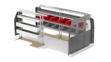Van shelving Americas Most Popular Bin package with Standard Set back Partition & roof and floor Anchor kit