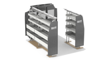 RolaCase RolaShelf Van shelving Basic Bin package with Standard Set back Partition & Roof and Floor Anchor.