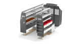 RolaCase RolaShelf Van shelving Electrical Bin package with Standard Set back Partition & Roof and Floor Anchor Kit.