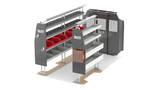 RolaCase RolaShelf Van shelving Americas Most Popular Bin package with Standard Set back Partition & Roof and Floor Anchor kit