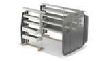 RolaCase RolaShelf Van shelving Basic Bin package with Standard Set back Partition & Roof and Floor Anchor.