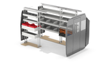 RolaCase RolaShelf Van shelving Service Bin package with Standard Set back Partition & Roof and Floor Anchor Kit.
